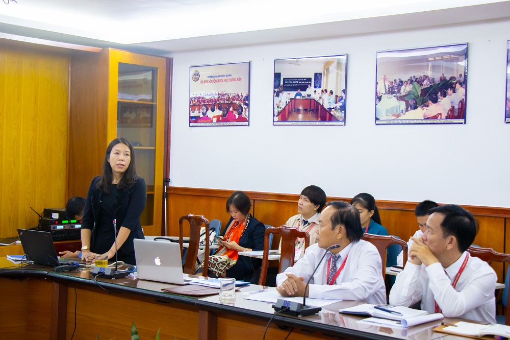 Nhằm nâng cao kiến thức và kỹ năng năng viết bài báo khoa học cho cán bộ, giảng viên nghiên cứu khoa học, sáng ngày 15/10, Phòng Quản lý Khoa học và Quan hệ đối ngoại Trường Đại học Bình Dương phối hợp với Tạp chí Khoa học của Viện Hàn lâm Khoa học và Công nghệ Việt Nam tổ chức “Hội thảo các tiêu chí lựa chọn của Web of Science và hướng dẫn chuẩn bị viết bài báo Khoa học”.  Tham gia buổi hội thảo có TS. Đoàn Thị Yến Oanh và TS. Lê Thị Vân Anh đại diện tạp chí Khoa học của Viện Hàn lâm Khoa học và Công nghệ Việt Nam, PGS.TS Lê Văn Cường - Phó Hiệu trưởng Trường Đại học Bình Dương cùng lãnh đạo các phòng, ban nhà trường đến dự.